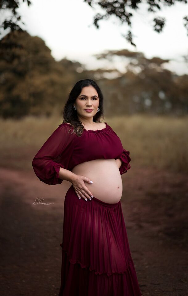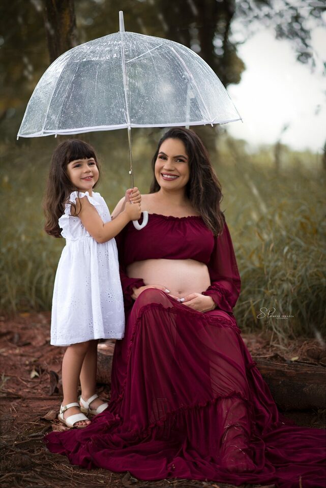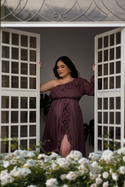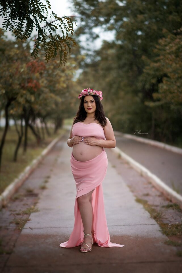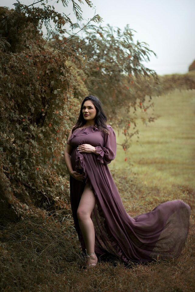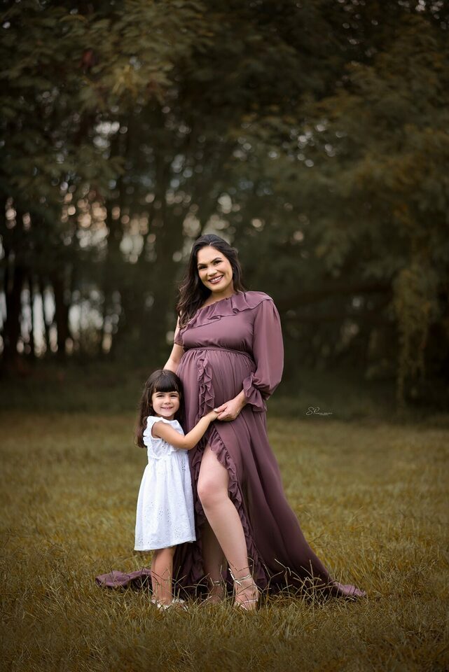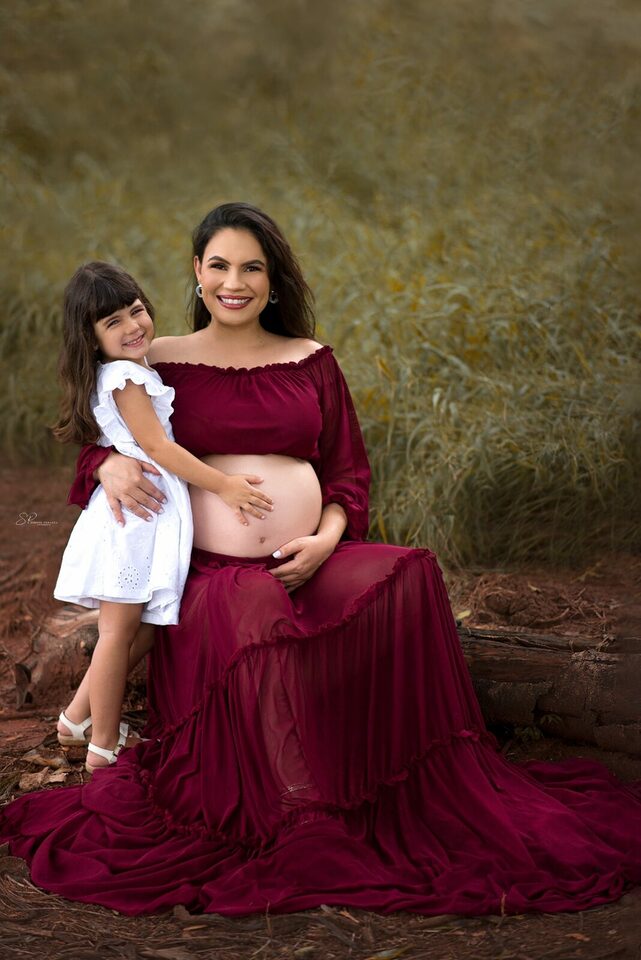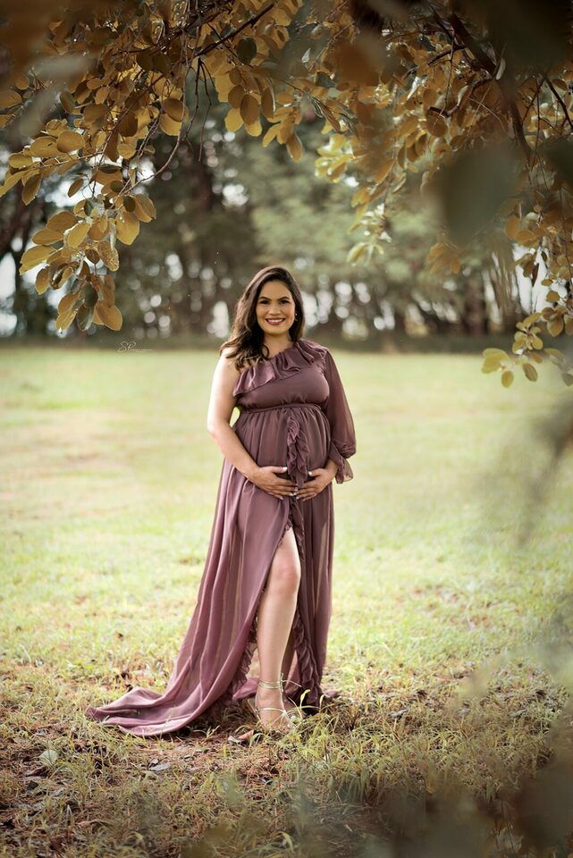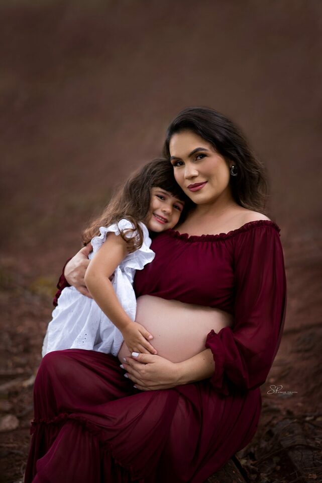 Ela demostra o amor, a realização no olhar e alegria no sorriso.