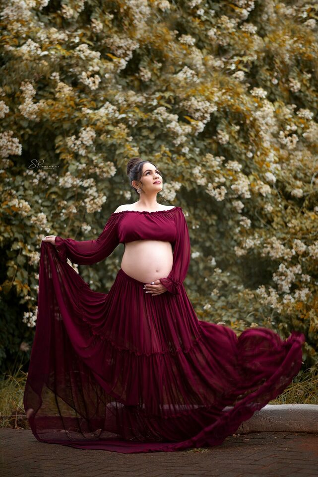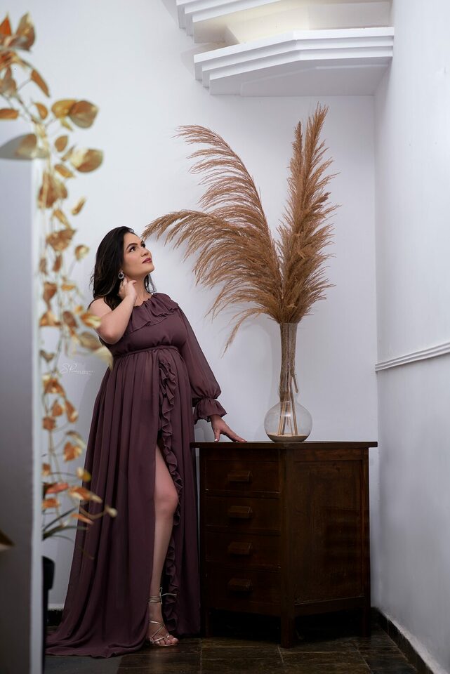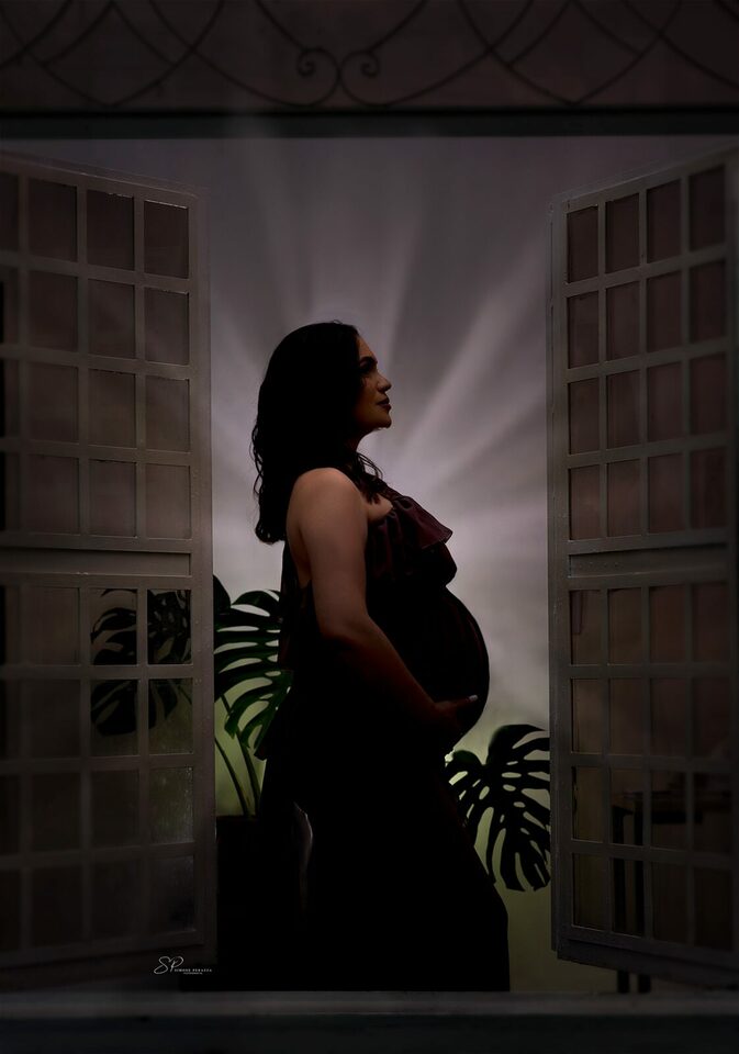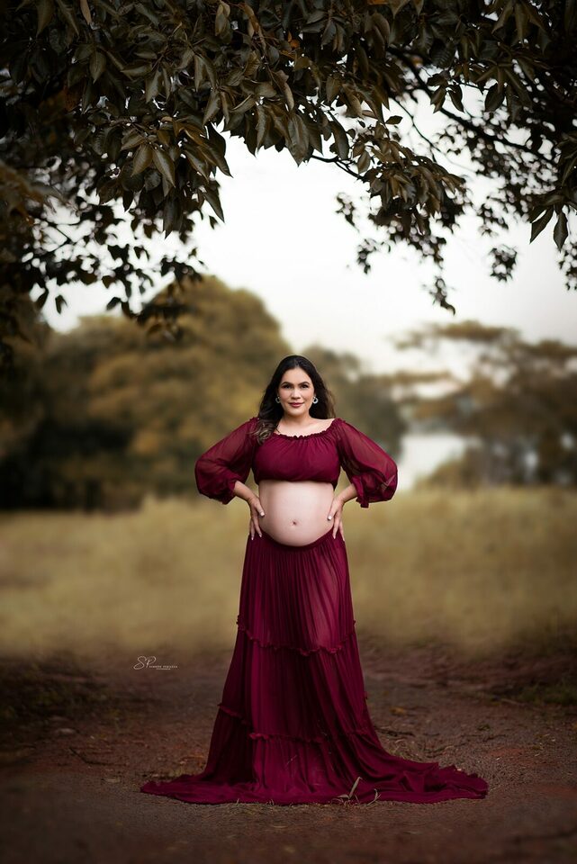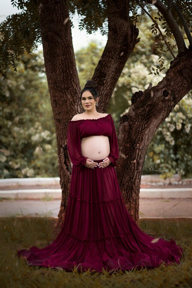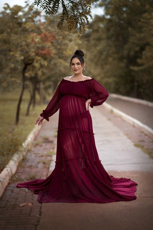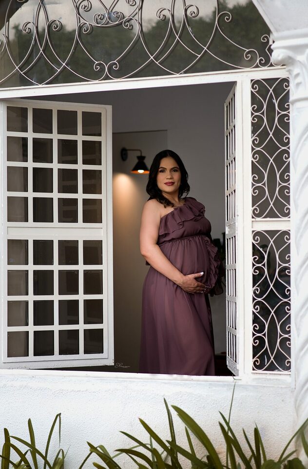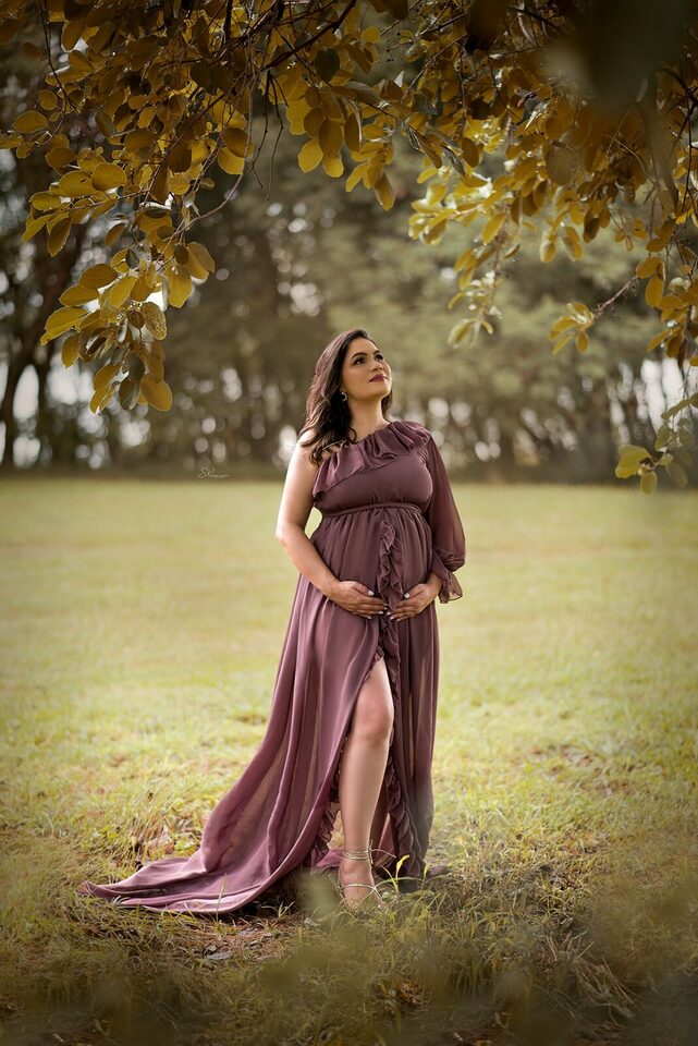 Ela demostra o amor, a realização no olhar e alegria no sorriso.