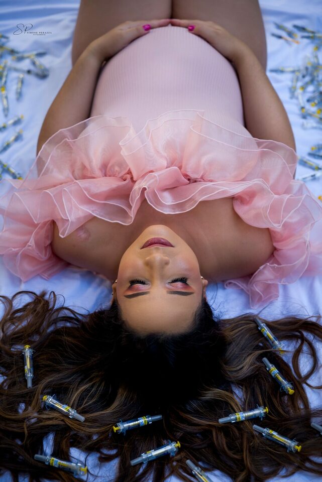 celebrando a barriga com a pratica de tirar fotos das injeções,