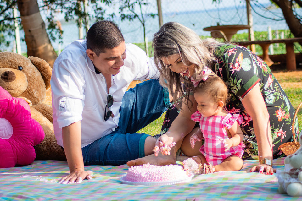E para comemorar o primeiro aninho da Lorenza, fizemos um "smash the cake" que é o seu primeiro contato com o bolo, ahhh só pela fotos ja sabem foi uma delicia fotografar essa família linda.......
